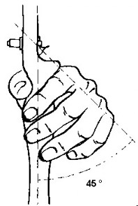 De bovenkant van de hand moet een hoek van ongeveer 45 graden met de handboog maken