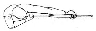 De pees wordt vastgehouden met de wijsvinger boven de nok en midden- en ringvinger eronder