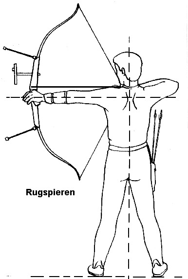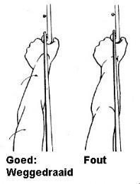 Booghand, trekhand en elleboog moeten één rechte lijn vormen