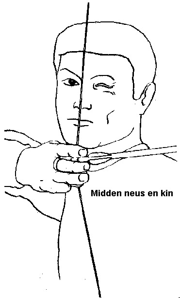 De pees van de handboog moet het midden van de neus en kin raken